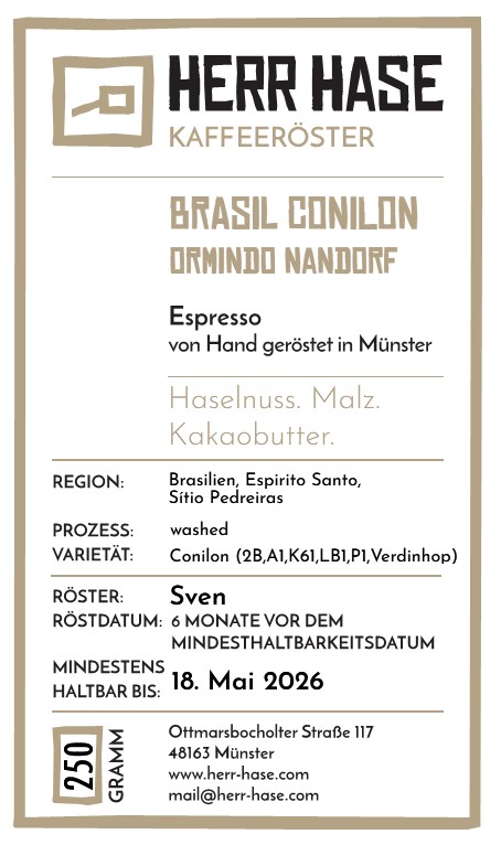 Das ist "mal was anderes" bei uns und Herr Hase hat dieses Mal keinen fruchtigen Exoten, sondern einen reinen Conilon aus Brasilien als Single Estate Espresso geröstet. Ein unfassbar weiches und cremiges Mundgefühl und eine Crema, die enorm präsent in die Tasse kommt. Bei dem Conilon handelt es sich um Varietäten aus dem Canephora Baum, was landäufig primär als Robusta bekannt ist. Eigentlich sind die Conilons neben dem Robusta im Canephora zu finden, sind zum Teil aber auch mit Robustasorten gekreuzt.