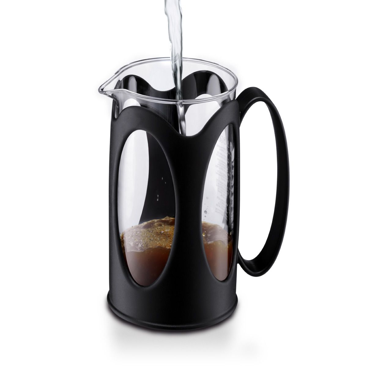 Die French Press bietet eine stilvolle und umweltfreundliche Möglichkeit, Kaffee zuzubereiten. Es werden keine Papierfilter benötigt – einfach Kaffeepulver einfüllen und heißes Wasser dazu gießen. Nachdem der Kaffee gezogen ist, den Filter vorsichtig nach unten drücken und den fertigen Kaffee genießen.