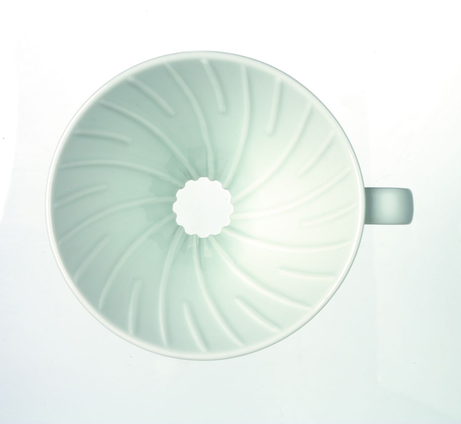 Durch die ausgepägten geschwungenen Rippen auf der Innenseite des Handfilters wird das Filterpapier effizient von der Wandung ferngehalten.